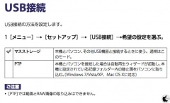 解決するには、カメラのUSB 接続モードを「マスストーレージ」に変更すると解決するそうです。