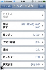 iPhone/iPod touch/iPadから直接カレンダーに登録することも出来ます。
