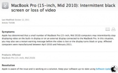 Appleが、サポート情報「MacBook Pro (15-inch, Mid 2010): Intermittent black screen or loss of video」を公開しています。