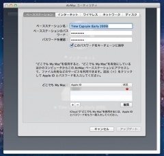ファームウェアのアップデート後、iCloudで「どこでも My Mac」を有効にするためには「AirMac ユーティリティ 6.0 (OS X Lion)」から行います。