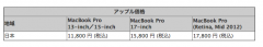 AppleJapanが、サポート情報「MacBook Pro のバッテリー交換」を更新し、MacBook Pro (Retina Mid 2012)のバッテリー交換費用は17,800円になると案内しています。