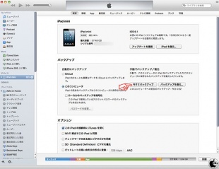 まず、KDDI iPad/iPad miniをiTunesに接続して、バックアップで「このコンピュータ」を選び「今すぐバックアップボタン」をクリックしてバックアップします。