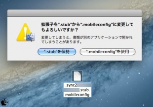 今度はファイルの拡張子を「.sub」から「.mobileconfig」に変更します。
