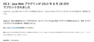 Appleが、サポート情報「OS X:Java Web プラグインが 2013 年 8 月 28 日付でブロックされました」を公開しています。