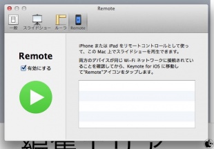 Appleがサポート情報「Using Keynote Remote」を公開し、Mac App Storeの「Keynote 6.1 for Mac」で、Phoneをリモコンとして使用するには、iPhone/iPadアプリ「Keynote 2.1 for iOS」を使用するようにと説明を行っています。