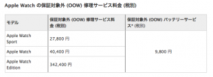 Appleが、サポート情報「修理サービス Q&A センター – Apple Watch」を公開し、液体侵入が原因で故障したApple Watchなどを交換修理(本体交換)する場合の金額は、Apple Watchが「40,400円」、Apple Watch Sportが「27,800円」、Apple Watch Editionが「342,400円」と案内しています。