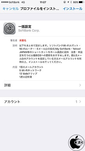 一括設定プロファイルが表示されたら、画面に表示される手順に従ってインストールを行います。