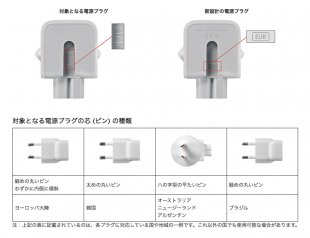 なお、米国、英国、中国、日本向けの AC 電源プラグや、 Apple USB 電源アダプタなど)は本プログラムの対象外だそうです。