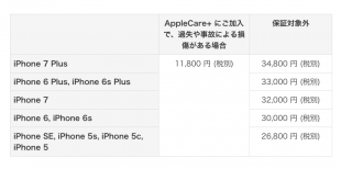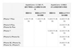修理項目として新たに「画面のみ」が追加され、2016年9月08日以降にAppleCare+契約した方の場合、3,400円で最大2回まで修理が可能となります。