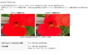 また、M1チップ搭載MacのmacOS Big Surによって自動生成されるカラープロファイルが、モニターの色域やガンマ値と一致しない場合があるそうです。