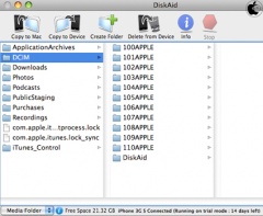 バックアップを実行したら、DiskAidを起動し、画面下のリストをMedia Folderに切換え、DCIMフォルダを削除します。