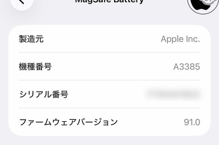 ファームウェアバージョンを確認するには、iOSの設定>一般>情報>MagSafeバッテリーで確認できます。