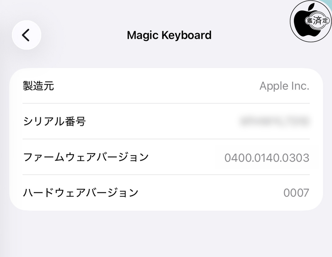 ファームウェアバージョンを確認するには、iPadOSの設定>一般>情報>Magic Keyboardで確認できます。