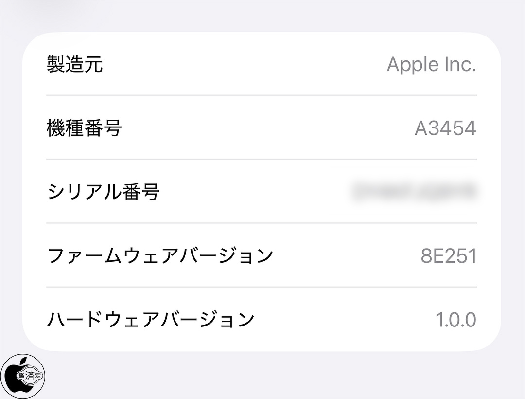 ファームウェアバージョンを確認するには、iOSの設定>AirPodsシリーズで確認できます。