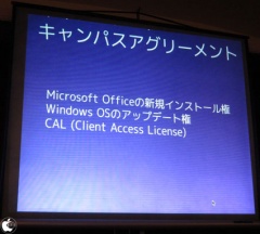 Windows環境に関しては、日本マイクロソフトとキャンパスアグリーメント契約を行っていて、安く手に入るWindows OSアップデート権を上手く利用し、これは、古いOSに対して、アップデートを行う変わりに、元に入っている古いOSを削除する必要があるが、削除対象にMac OS Xが入っていないため、Mac OS Xを削除することなく、Windows OSアップデート権を使って、Windows OS環境を構築することが出来たそうです。これは、日本マイクロソフトに確認して行われているそうです。