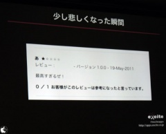 あと、App Storeのレビューの中で、最高に褒めてくれているのに星1個というのが悲しいと話してました。
