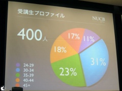ビジネススクルールも展開し、マーケティングなどを幅広い年齢層の方が受講されていて、その時にAppleを例にしたテーマにしている事を紹介していました。