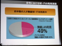 スマートフォンデバイスは3G回線よりもWi-Fi環境で利用することが快適なのは間違いなく、自宅の環境でWi-Fiを利用する人がどれだけいるのか調べてたところ、光回線を導入している世帯のうち、無線LAN環境を導入しているのは49%と過半数程度だったことがわかり、スマートフォンデバイスを自宅でも3G回線を利用している人が半数もいる現状を紹介していました。