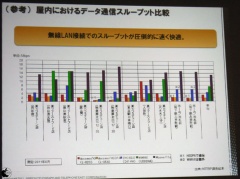東京都内のカフェで、ドコモ通信端末、イーモバイル端末、WiMAXなどと、公衆無線LANのMzoneの速度を調査したところ、全てにおいて無線LAN環境が速い結果となったと紹介していました。
