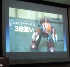 AUGM 長崎 2012において、駿河台大学 メディア情報学部 斎賀和彦教授が、キヤノンの新しい「EOS 5D Mark III」で作成したALL-i コーデックは3倍重いというデメリットがあると話してました。