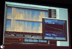 海を撮影した映像の音声に鳥の声が入っていた場合、その鳥の声だけを消す事が出来るといったデモや、アナログレコードから収録したサウンドから針飛びしている音などを消せるといった編集をデモを交えて紹介していました。