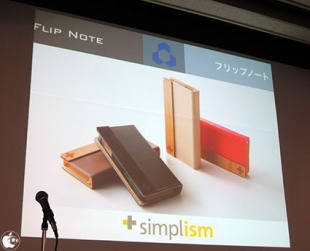 桃の木素材を使用したフリップノートスタイルケース「Flip Note Style for iPhone 5」を紹介していました。装着した状態で横表示でのスタンドとしても使用することが出来るそうです。