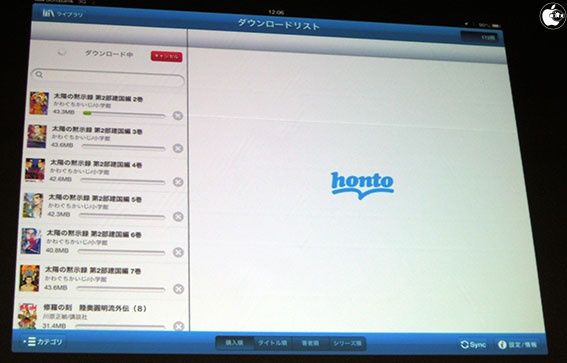 また、書棚管理機能として「Honto」というサービスがあり、一度購入した書籍を削除したとしても、購入書籍の表紙は残るので、全てローカル保存する必要がないのは便利だと紹介していました。