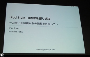 AUGM名古屋2012において、iPod Styleの戸津 弘貴氏が、サイト10周年を迎えたそうで、取材の裏話しを交えて色々なネタを披露していました。