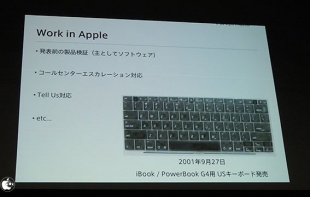 2001年は、Appleに就職して製品検証やコールセンター業務などを行っていて、そこでiBook/PowerBook G4用のUSキーボードを発売することを実現したと話していました。