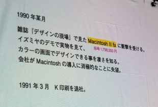 1990年に雑誌「デザインの現場」でみたMacintosh II fxをみて衝撃を受けて、当時約180万円だったが会社が導入に消極的だったので、会社に将来はないと感じて独立することに決めたそうです。