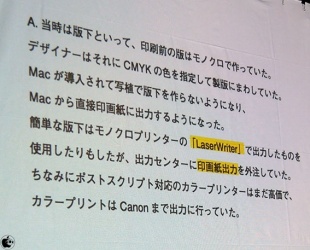 当時はモノクロの版下制作をLaserWriterで印刷したものを使用して、出力センターに印画紙出力を外注していたと話してました。