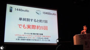 容量だけで計算するとiPhone 5を7回充電出来ることになるが、実質的には5回程度になると説明していました。