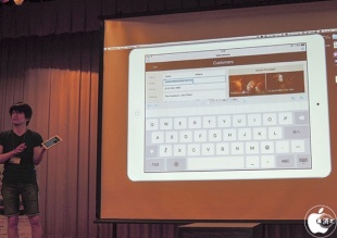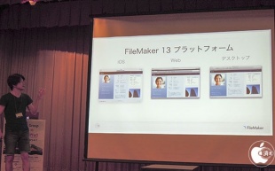 最初に、iPhone/iPadアプリ「FileMaker Go 13」について紹介し、表紙のカスタマイズが可能で、レコード表示機能がとても早くなったと紹介しました。