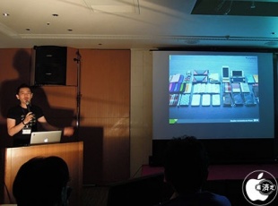 AUGM東京2014において、トリニティが、女性スタッフだけで開発したiPhoneバッグ「Mini Bag」「Note Bag」を紹介した。