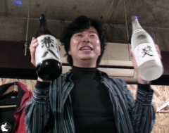 懇親会では、Apple User Group Meeting in OITAの責任者で、PBWEB.jpのほしいち氏が、定番の一升瓶両手持ちで、成功を祝う乾杯が行なわれました。