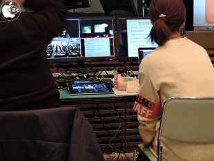 会場には、3台のビデオカメラが設置され、LiveWedgeでスイッチングし、Blackmagic DesignのIntensity経由で、MacとThunderbolt接続し、Telestreamのライブストリーミングソフトウェア「Wirecast」で配信利用されていました。