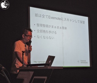 ペーパーレスにしたいのは、紙自体の管理が出来ないことがあり、紙は全てEvernoteにスキャンして保管することが便利だと説明していました。