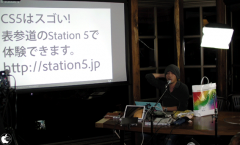 CRI WAREの@havahavaさんが、水没iPadという自虐ネタを披露したあと、@Seasonsさんが、オフ会などの出欠ができ、座ってる席まで分かる「受付簿 for iPad」を開発し、無料配布する予定だと話してました。