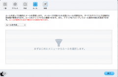 設定アイコンをクリックして、環境設定を表示すると、メール振り分けを行うルールの作成や、メール受信後に自動返信する「休暇」などが追加されています。