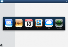 新しい、MobileMeでは、ツールバーにメールのアイコンだけがデフォルト表示されるようになっていて、そのアイコンをクリックすると、他のサービスにアクセスするための大きなボタンが表示されます。