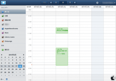 カレンダーでは、カンレンダージャンルの表示が立体的になり、また、アクションタブに、カレンダー表示を探した後に、直ぐに今日に戻れるボタンが追加されています。