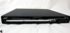 ただ、このケースは、外れやすく、また、フロント部分を隠す機構が備わっておらず、スロットローディング機構が剥き出しになった状態になります。