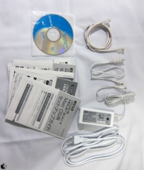 付属品は、LANケーブル(1m)、USBケーブル(A-miniBタイプ 0.5m)、ACアダプター、ACケーブル、サポートソフト(CD-ROM)などが同梱されています。