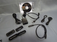 付属品は、ドックアダプター(4種類)、USB2.0ケーブル(50cm×1、1m×1)、FireWire800ケーブル(50cm)、FireWire400ケーブル(50cm)、ACアダプター、ACケーブル(ACアダプター用)、ユーティリティーCDで、かなりケーブル類が充実しています。