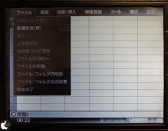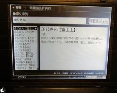 ポメラ DM100には「明鏡国語辞典MX」「ジーニアス英和辞典MX」「ジーニアス和英辞典MX」の電子辞書が搭載され、本体のボタンから直ぐに呼び出せるようになっています。