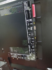 接続端子類も、外す事はないであろうアンテナケーブルは、液晶背面の下側に設置されていますが、USB端子やアナログ入力端子、一部のHDMI端子などは、左側面側に用意されています。
