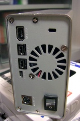 背面には、FireWire 400ポートx1、FireWire 800ポートx2、USB 2.0 ミニBコネクタ(5pin)ポートx1の系4つです。