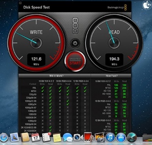 MacBook Pro (Retina, 15-inch, Early 2013)に接続し、Blackmagic Disk Speed Testを使用してベンチマーク計測を行ってみました。