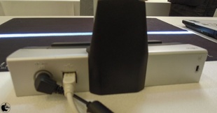 台の背面側には、ScanSnap共通の電源アダプターコネクタと、USBポート、セキュリティーロックが用意されています。