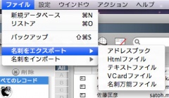 読み取ったデータを、Mac OS X Leopardのアドレスブックに登録するには、「ファイル>名刺をエクスポート>アドレスブック」を選択するだけで、自動的にアドレスブックに追加処理が行なわれます。
